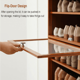Keep your entryway neat with this space-saving narrow bamboo shoe cabinet. Featuring a flip-door design, it offers ample storage while maintaining a stylish and clutter-free look. Its fully sealed back and side panels provide stability, making it ideal for hallways, entryways, and small spaces.