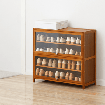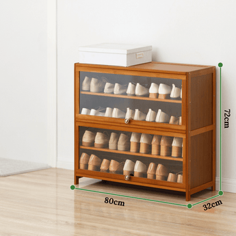 Multi-Layer Bamboo Wood Shoe Cabinet with Flip Doors (80cm)