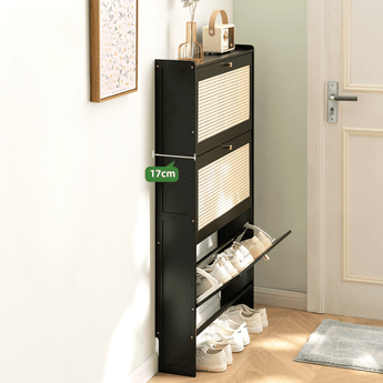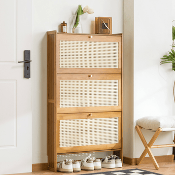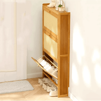 Keep your entryway neat with this multi-layer bamboo shoe cabinet. Designed for efficient storage, it features dustproof doors and a high vertical structure, maximizing space while keeping shoes organized and clean. The sturdy bamboo build ensures durability, while its modern design enhances any home decor.