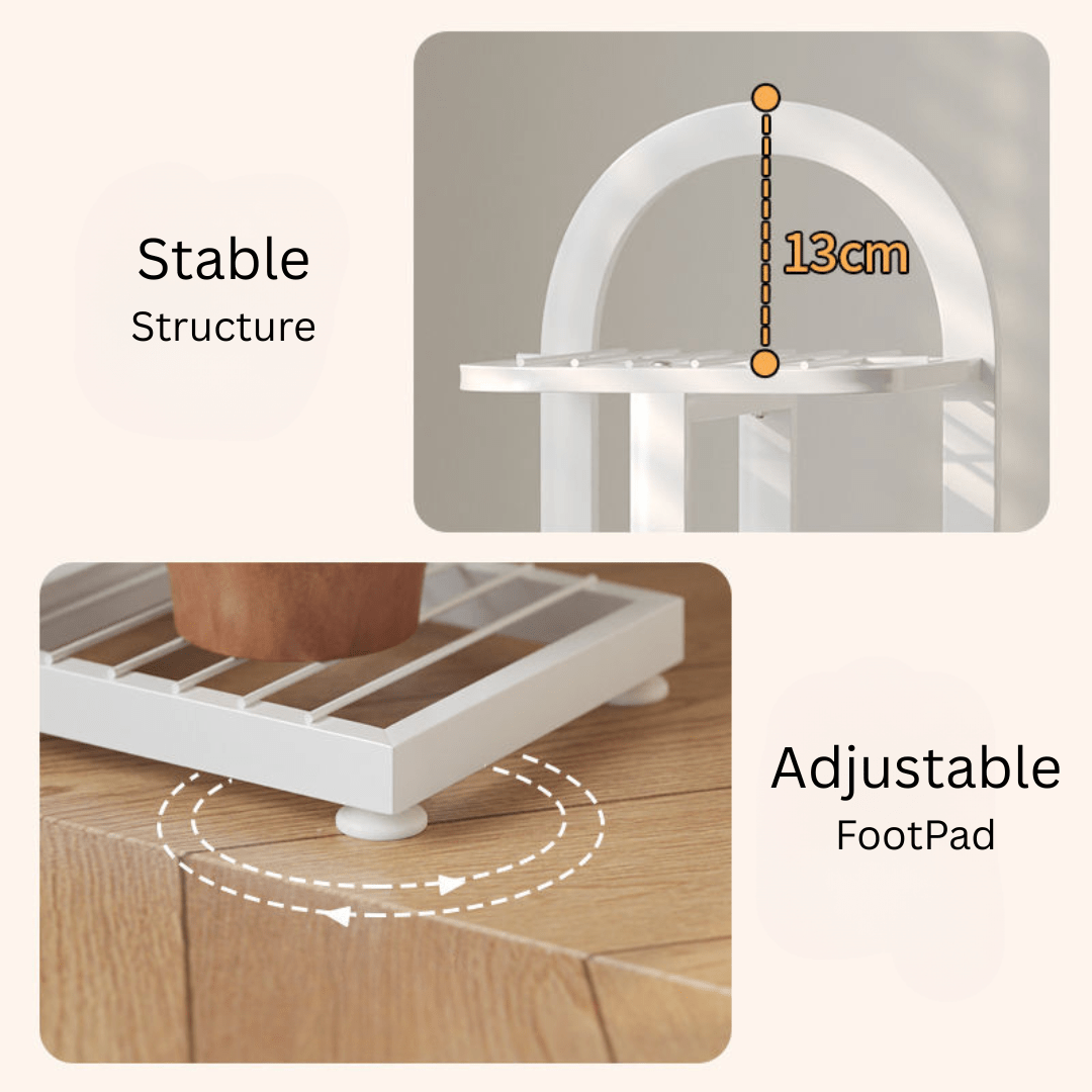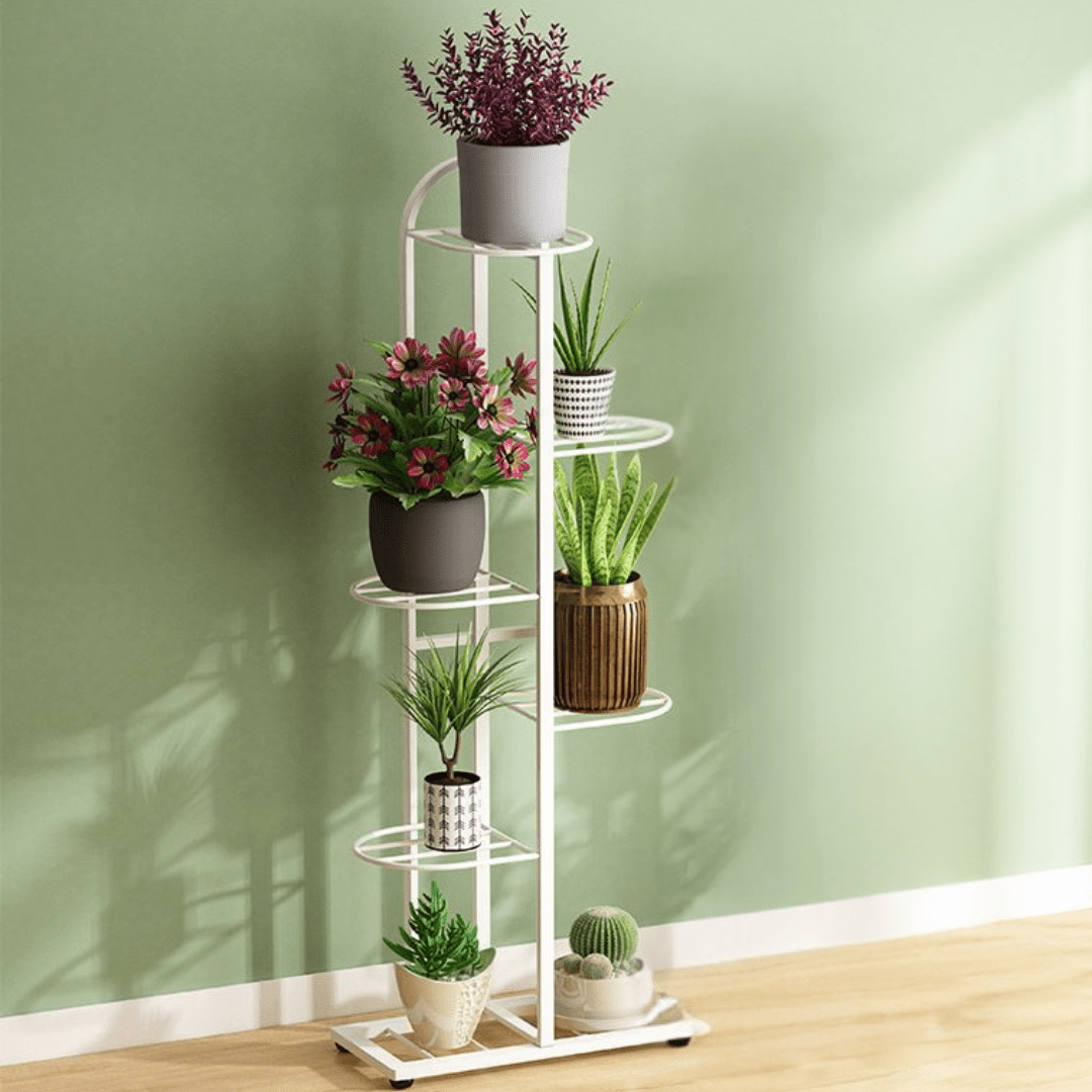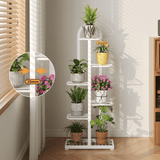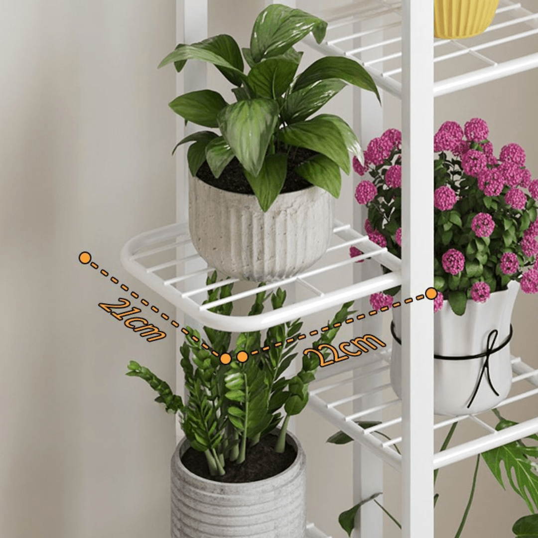 Multi-tiered layout accommodates up to seven plant pots, making it ideal for compact spaces while still creating a lush green corner.