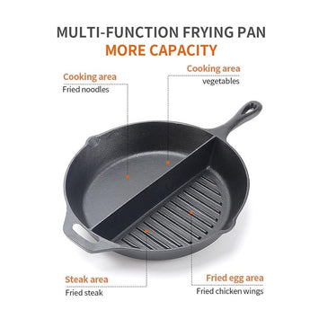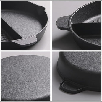 Multi-Purpose Cast Iron Flat & Grooved Cooking Pan(32cm)