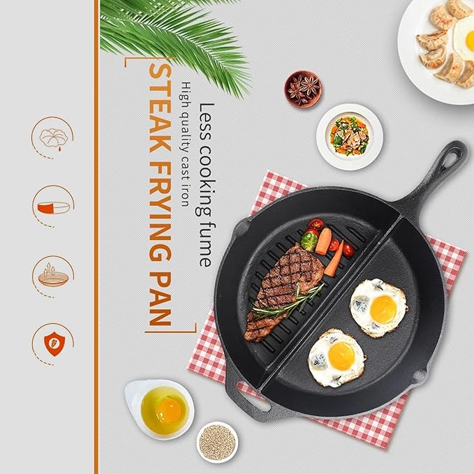 - High-Quality Cast Iron Construction: Made from premium cast iron cookware, the pan provides excellent heat retention and even heat distribution, ensuring consistent cooking results.