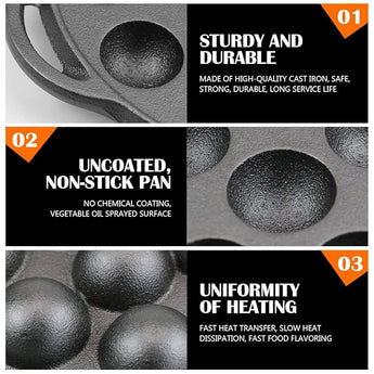 Durable Cast Iron Construction: Made with high-quality cast iron, this cast iron appam maker ensures long-lasting performance and excellent heat retention.