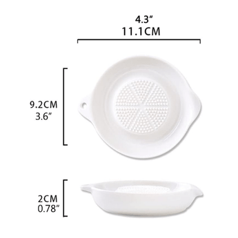 Upgrade your kitchen with our premium ceramic grater plate featuring an innovative inverted triangle tooth design that effortlessly transforms garlic, ginger, onions, and more into fine particles. Measuring just 11.1cm long and 2cm thick, this space-saving tool is heat-resistant, dishwasher-safe, and leaves no residue behind for hassle-free cleaning.