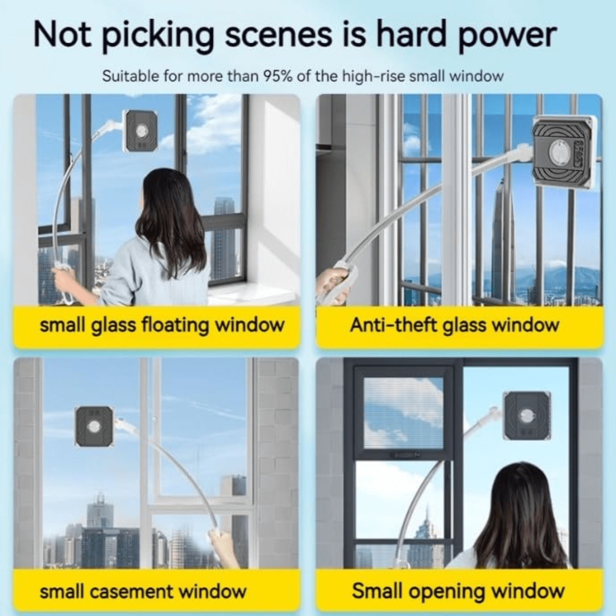 - Safe Indoor Cleaning for High Windows – Designed for indoor use, this window cleaner eliminates the risks of cleaning high-rise windows from the outside. Enjoy a safer, more convenient way to maintain spotless glass.