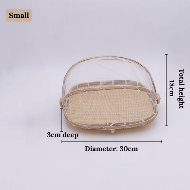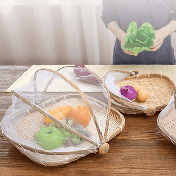Multi-Purpose Handwoven Bamboo Basket with Mesh Food Cover
