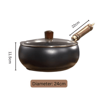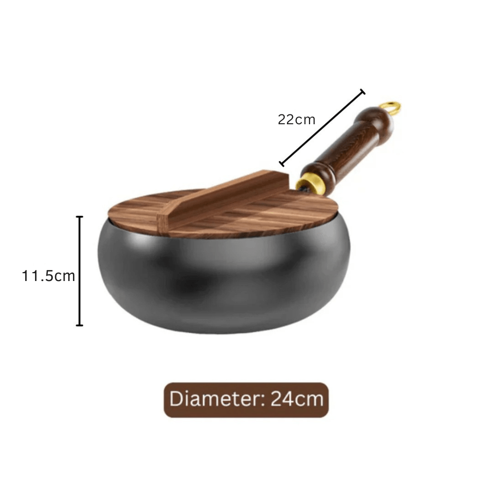 Multi-Purpose Cast Iron Cooking Pot with Wooden Handle (24cm)