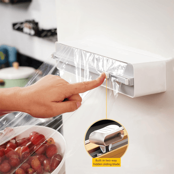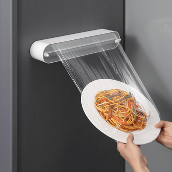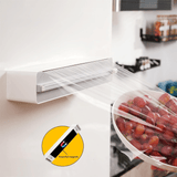 This plastic wrap cutter is designed for effortless and safe dispensing of cling film, aluminum foil, and baking paper. Made from durable ABS material, it features a built-in slide cutter for precise cutting. Its compact, magnetic design allows for easy attachment to refrigerators, saving kitchen space.