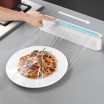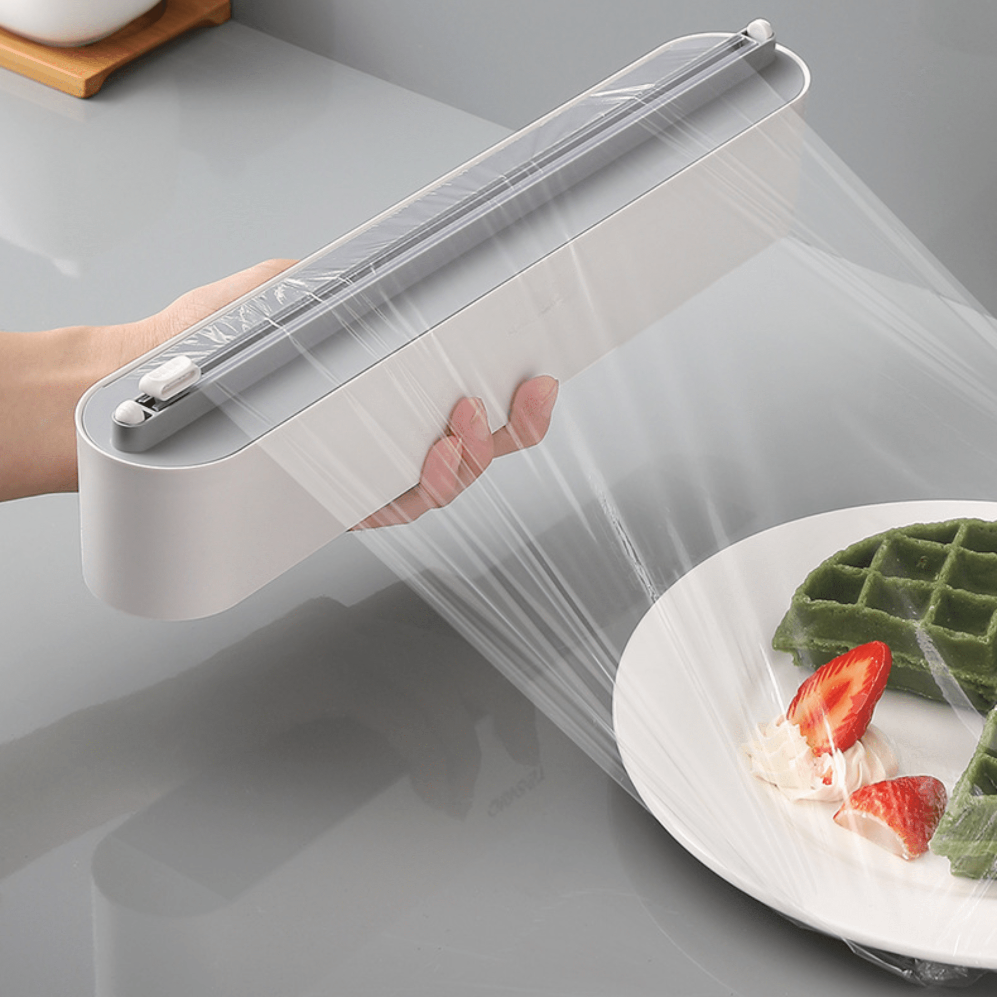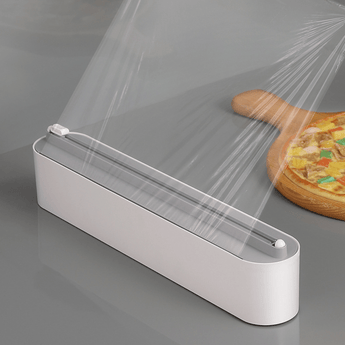 Features a built-in slide cutter for smooth and precise cutting of plastic wrap, aluminum foil, and baking paper, eliminating the risk of injury from metal blades.
