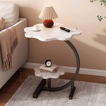 This Nordic-style side table combines elegance and function, perfect for bedrooms, living rooms, or small apartments. Featuring a shiny marble-textured surface and double-deck design, it offers open storage and a compact footprint—ideal as a bedside table or a sofa-side companion.
