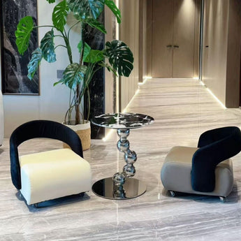 Crafted with thick, skin-friendly leather fabric, the stool feels soft and delicate while maintaining long-lasting durability. Its smooth finish resists daily wear, offering both comfort and easy cleaning for a sophisticated look in any modern living space.