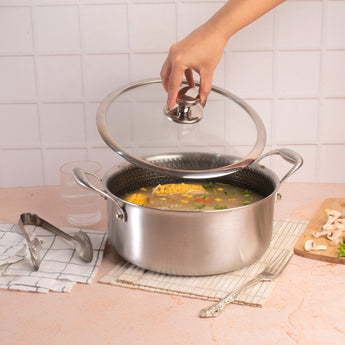 Multi-Purpose Stainless Steel Honeycomb Soup Pot with Lid (24cm)