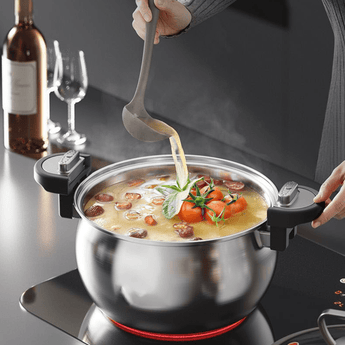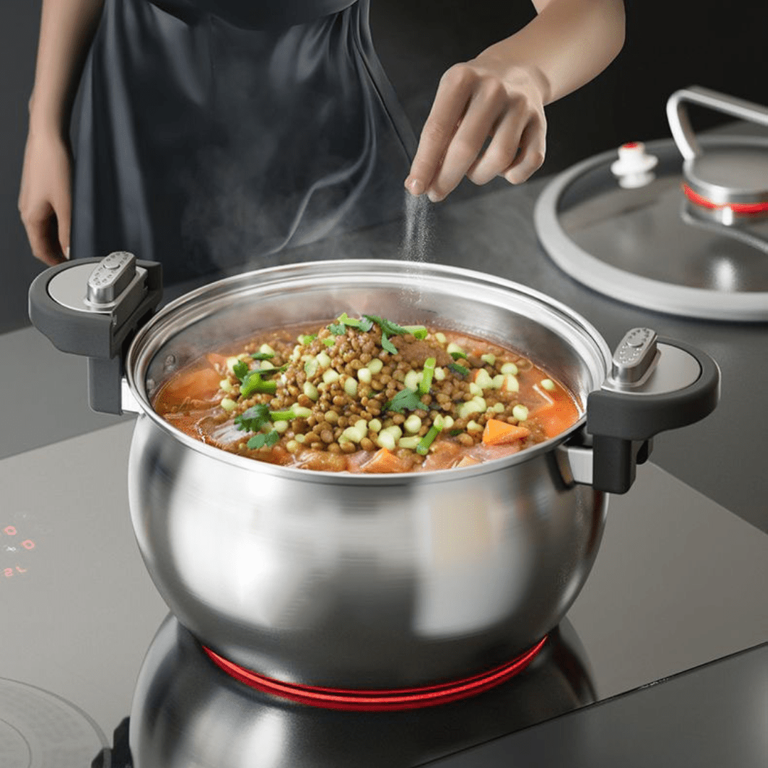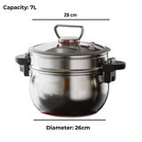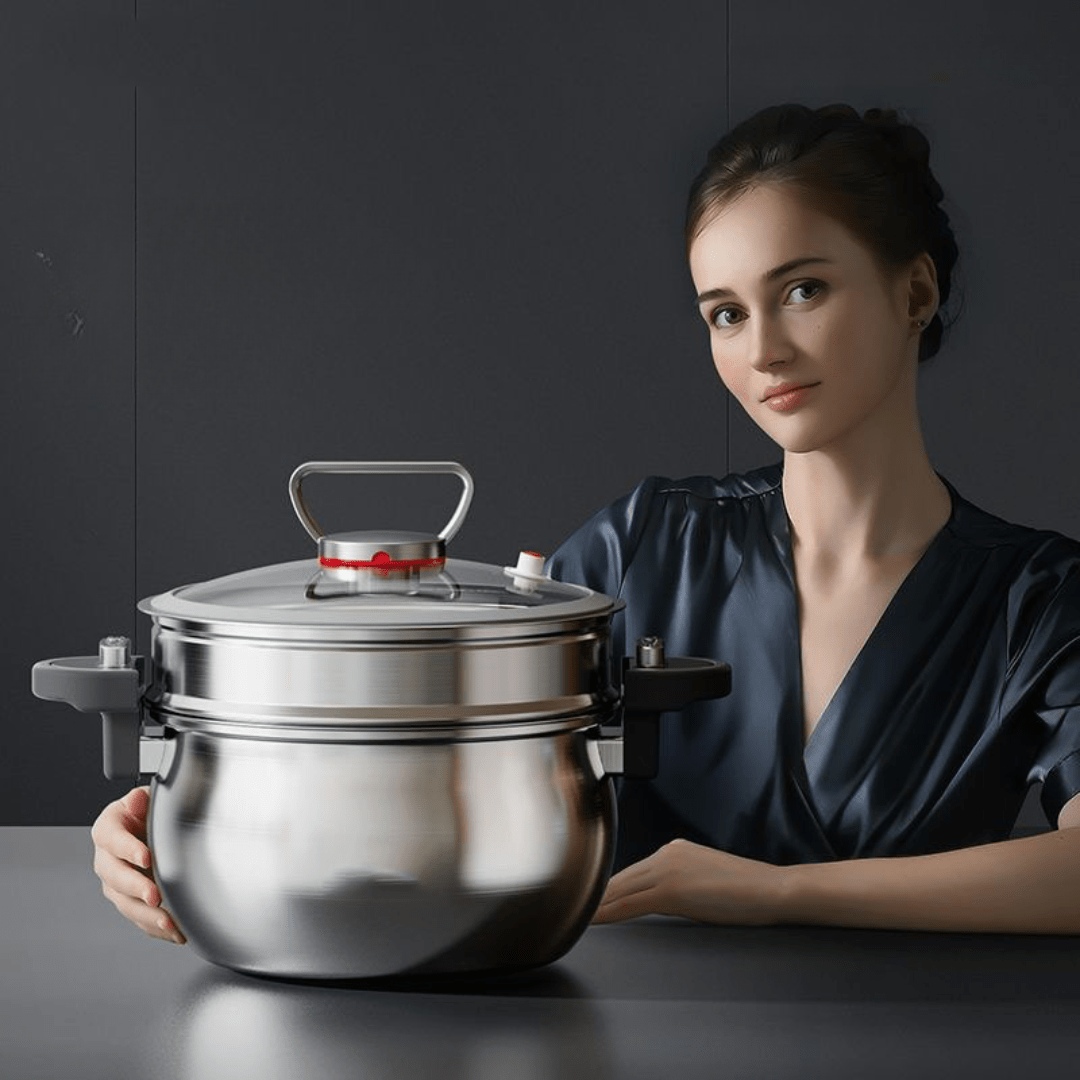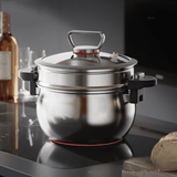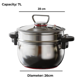 Cook healthier and tastier meals with this 26cm stainless steel micro-pressure steamer. Made from 304 stainless steel, it offers a thickened three-layer steel body, a large 7L capacity, and innovative micro-pressure technology, ensuring efficient, versatile, and safe cooking for any stove type.