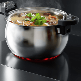 With its 7L "big belly" design, this steamer is ideal for preparing soups, stews, and large meals. It can accommodate a whole duck without spilling, making it perfect for family-sized dishes.