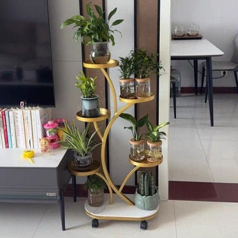 Bring nature into your home with this 5-Tier Plant Stand with Wheels, designed to display multiple plants in an elegant and space-saving way. With a sturdy frame and weather-resistant finish, this stand is perfect for living rooms, balconies, patios, or gardens. Its rolling design makes it easy to move, while the multi-layered shelves let each plant enjoy enough sunlight. A versatile piece, it can also hold books, decorations, or collectibles, adding both beauty and functionality to any space.