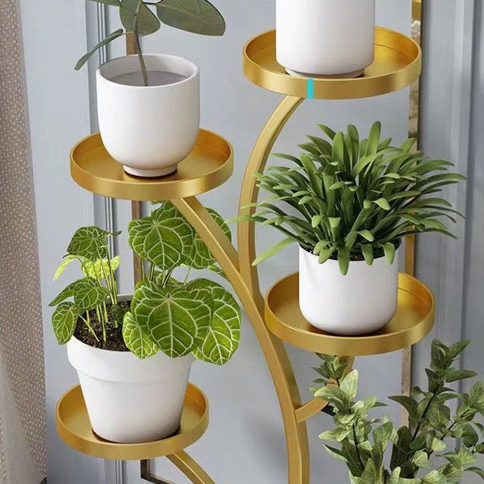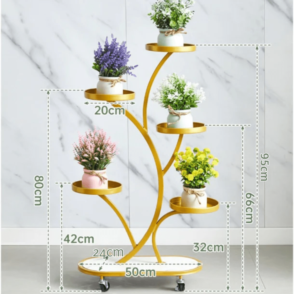 - Elegant Multi-Tier Design: This 5-tier plant stand offers a chic way to display your favorite plants. Each tier is designed to provide enough space and sunlight for potted plants, while enhancing your home décor with a stylish golden frame.