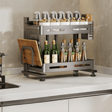 Elevated guardrails around each tier protect bottles and jars from slipping or tipping over. Combined with the rack’s high load-bearing structure, these features enhance safety and prevent spills or breakages during everyday use.