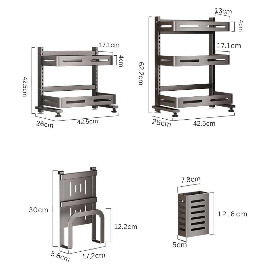 Built with thickened stainless steel, this rack offers excellent resistance to corrosion, rust, and stains. It is also designed to withstand the pressure of multiple kitchen items without bending or wobbling, ensuring long-lasting use while maintaining a clean and polished look.