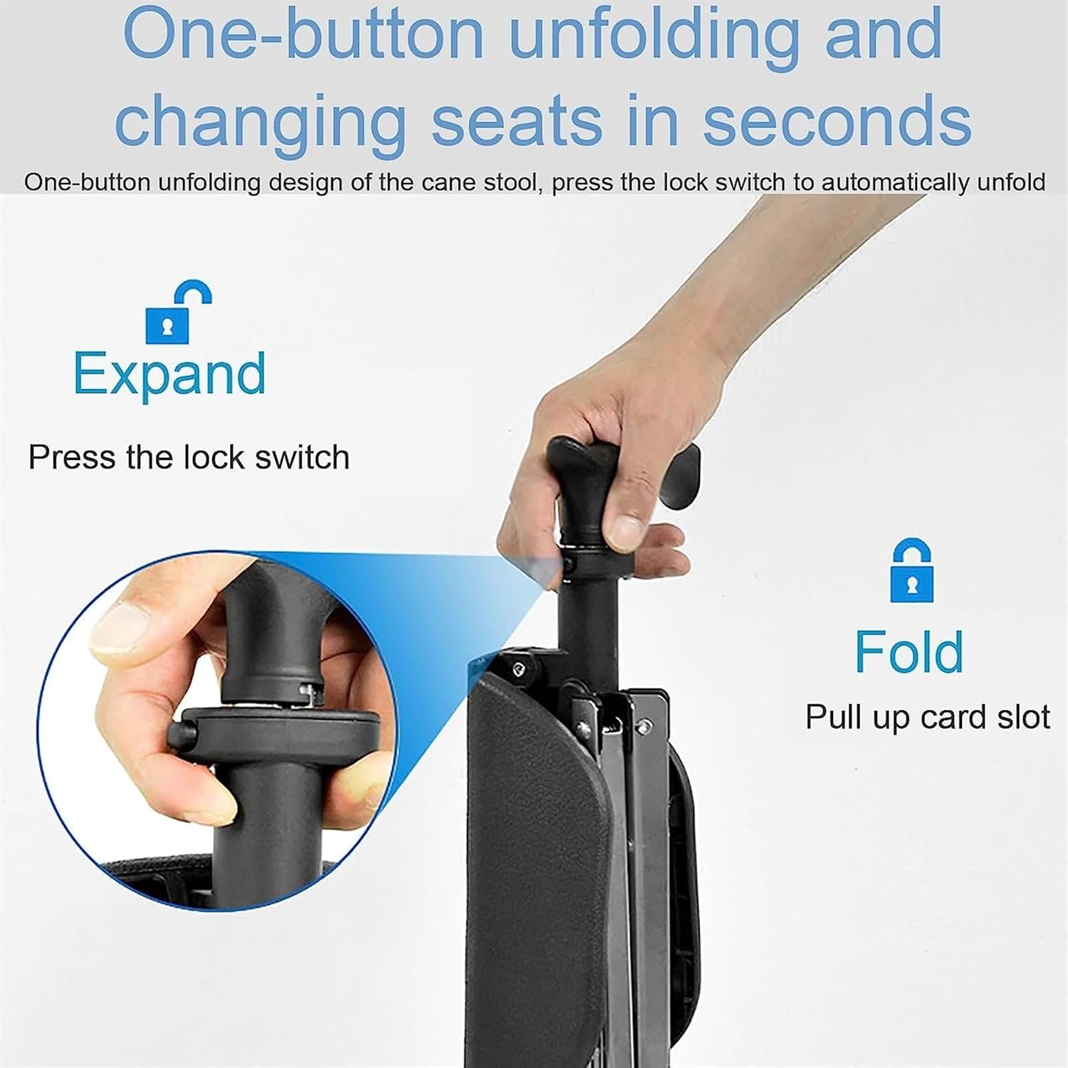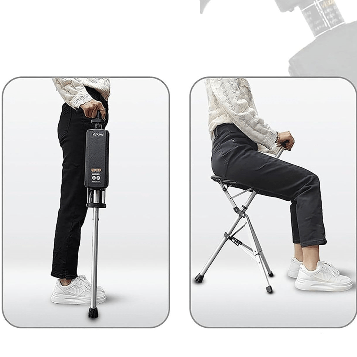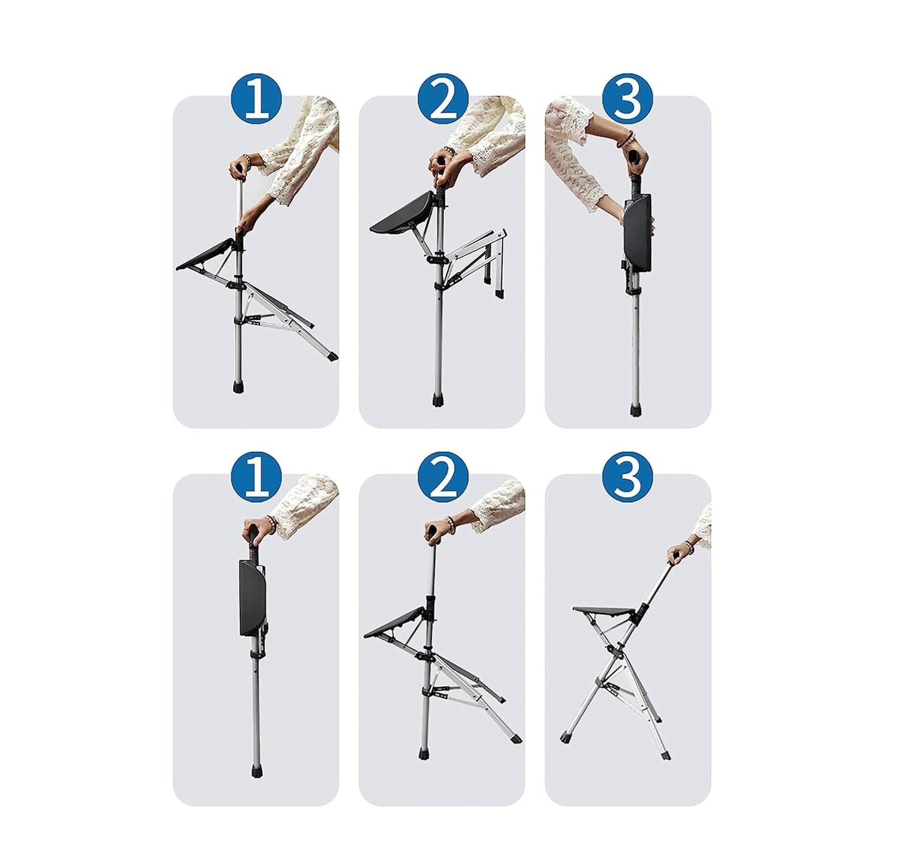 This smart mobility aid doubles as both a cane and a seat. Ideal for resting during long walks or queues, it transforms instantly with a quick unfolding mechanism.