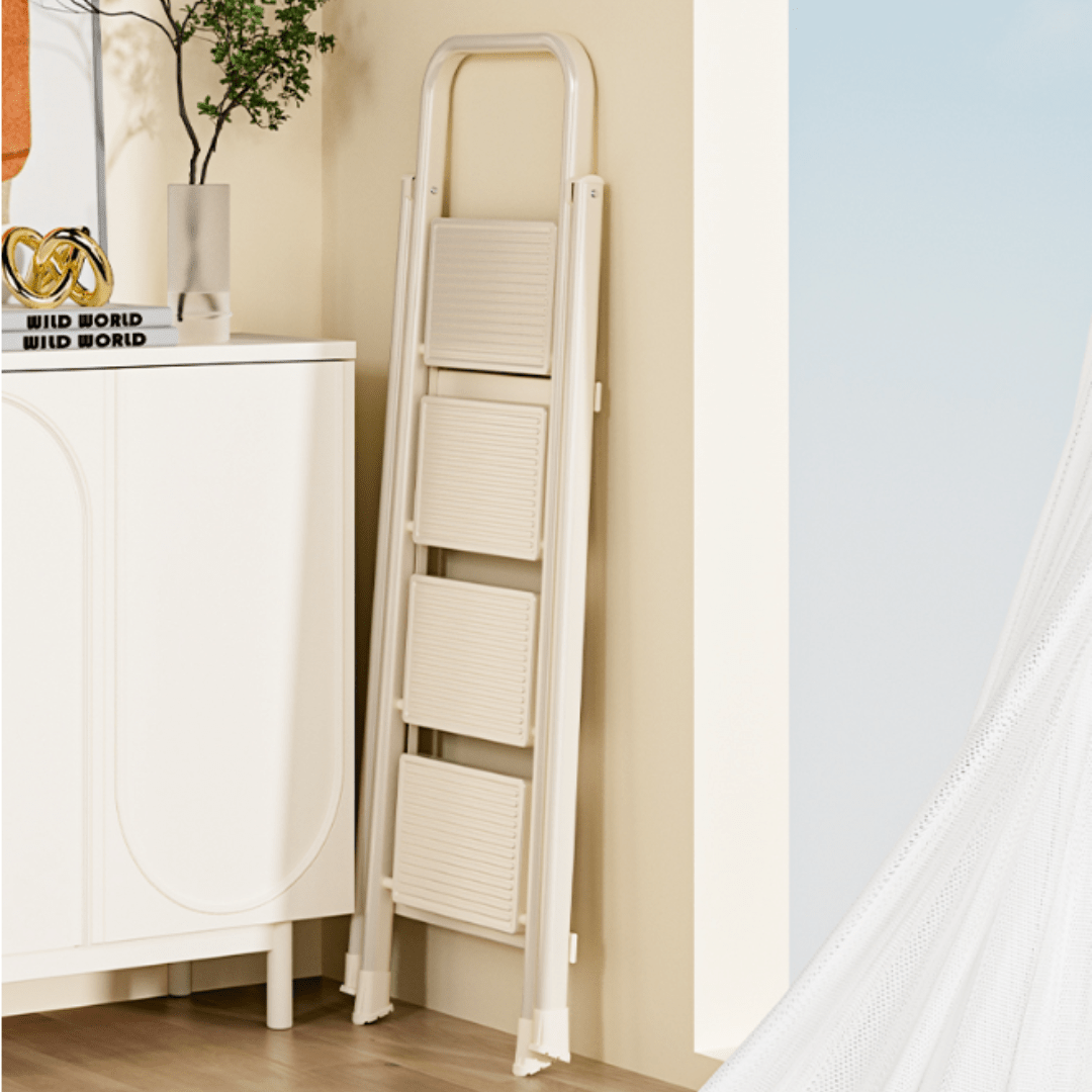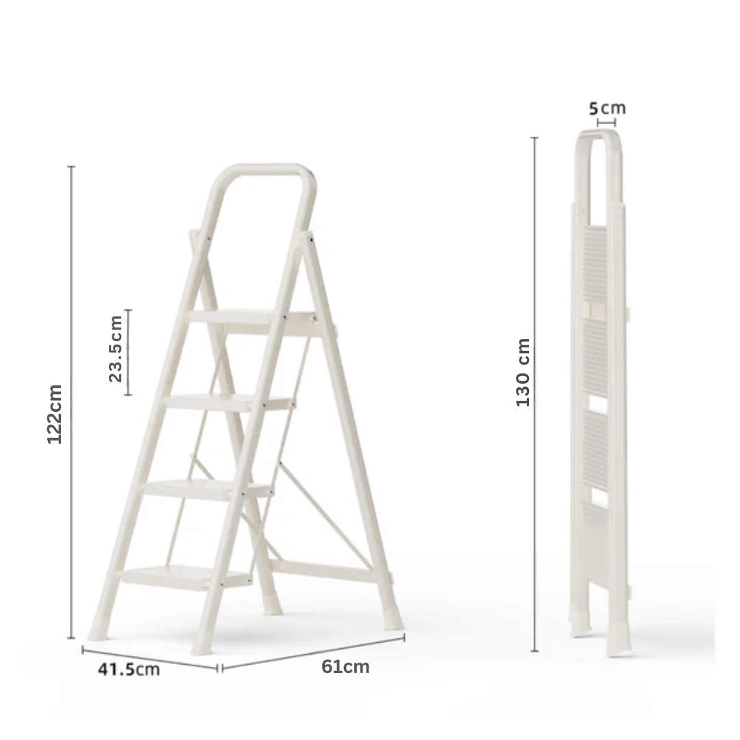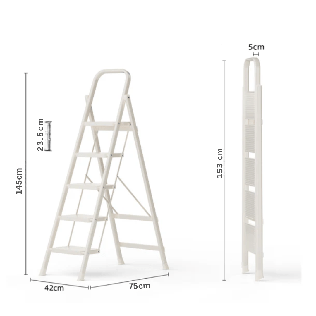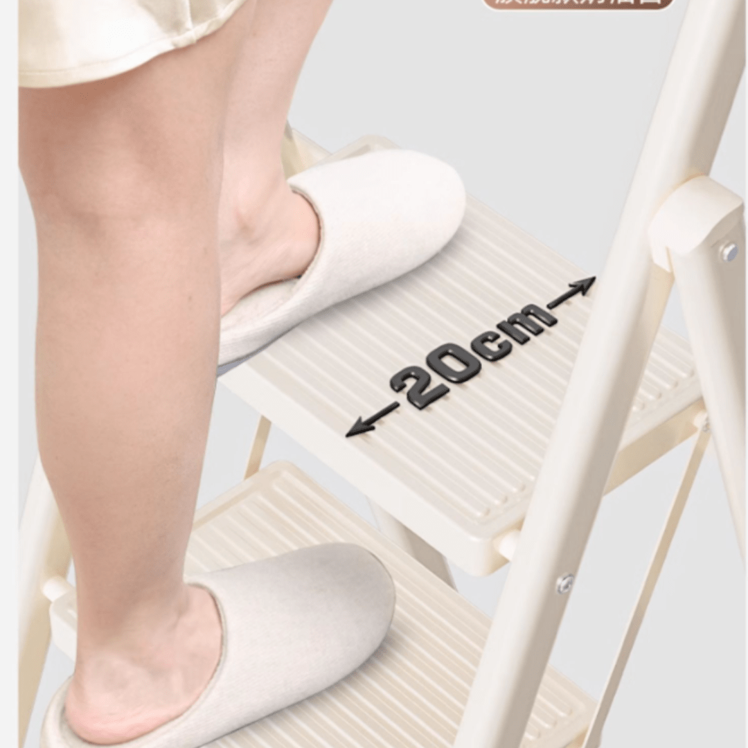 This multifunctional folding ladder is designed for indoor safety and convenience. With a sturdy carbon steel frame, wide non-slip pedals, and reinforced support beams, it ensures secure climbing. Lightweight and space-saving, it's ideal for reaching high shelves, changing bulbs, or household repairs.