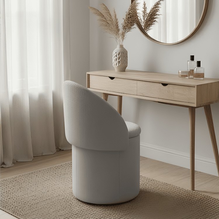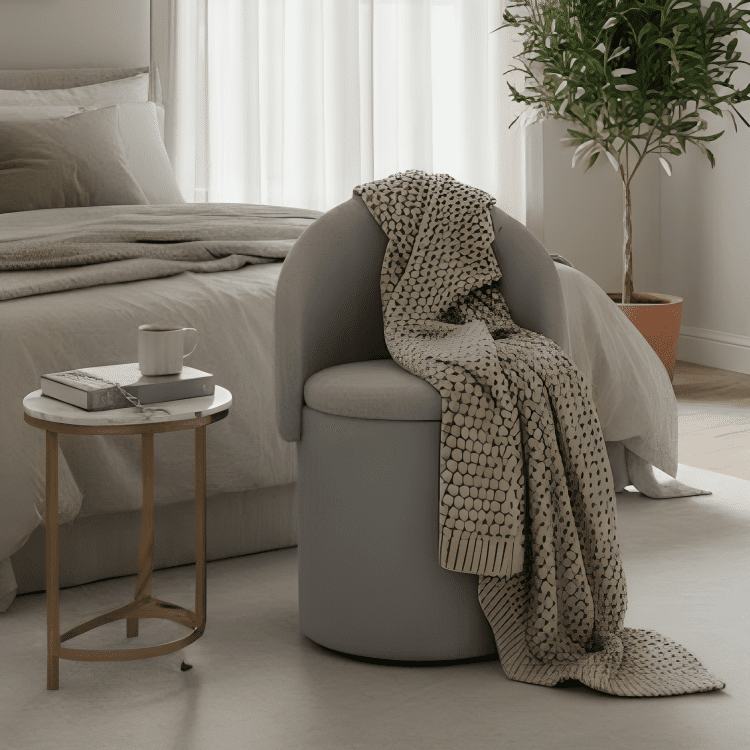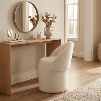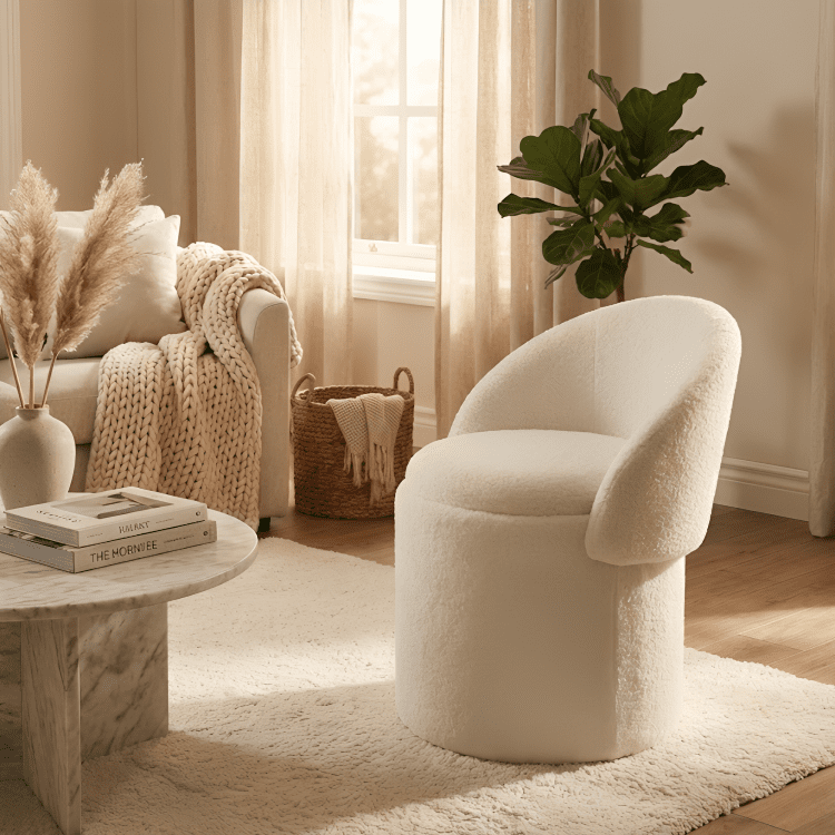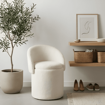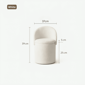 This multifunctional stool blends soft sherpa comfort with hidden storage and a foldable space-saving backrest. Its sturdy cylindrical base offers stable seating while maintaining a modern, minimalist look. Ready to use out of the box, it adds both elegance and practicality to any personal space.