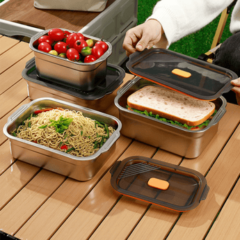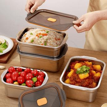 Keep meals fresh and secure with this stainless steel square fresh-keeping box, perfect for household use, meal prep, or outdoor adventures. Its fast-conducting stainless steel design locks in freshness quickly, while the vacuum-sealed lid prevents leaks and oxidation. Whether you're refrigerating leftovers, carrying lunch, or storing ingredients, this container offers lasting freshness and safe food storage. Oven and ceramic stove compatible, it's as functional as it is durable.