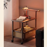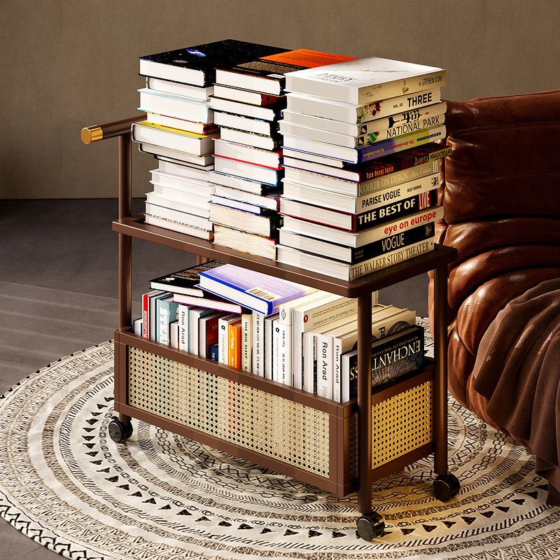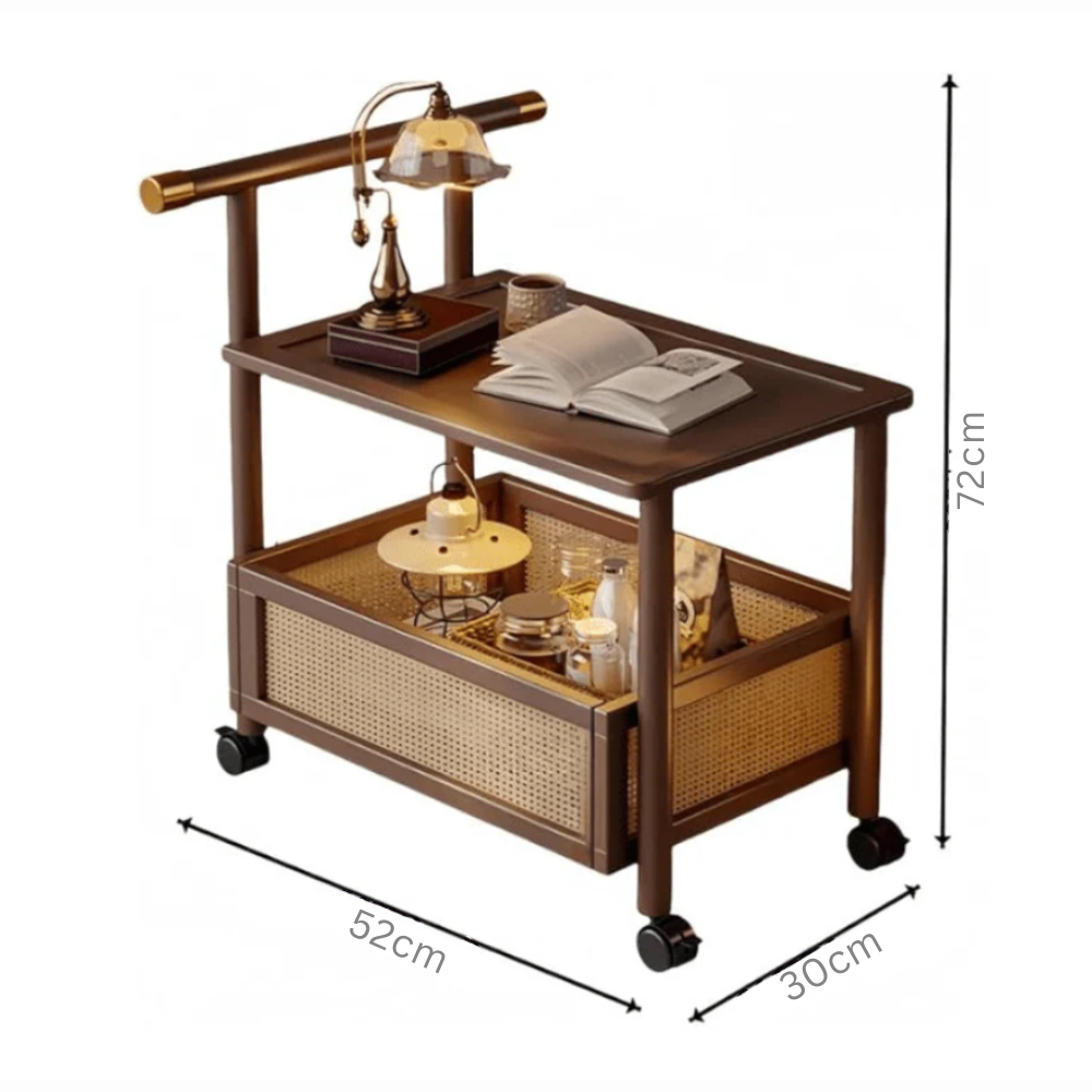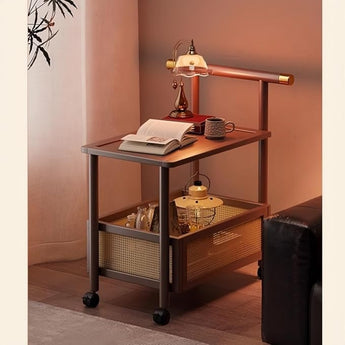 This versatile rolling side table combines smart storage with effortless mobility. Its two-tier open design and locking casters make it perfect for modern living spaces.