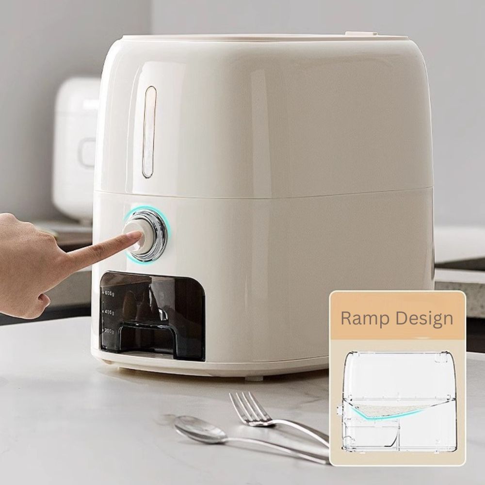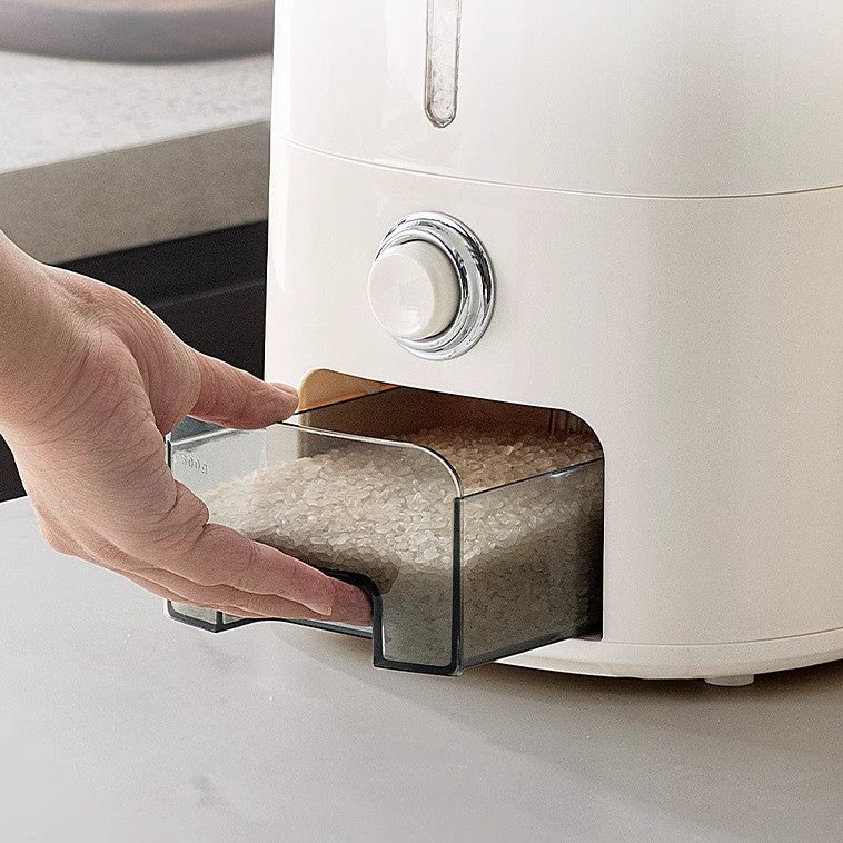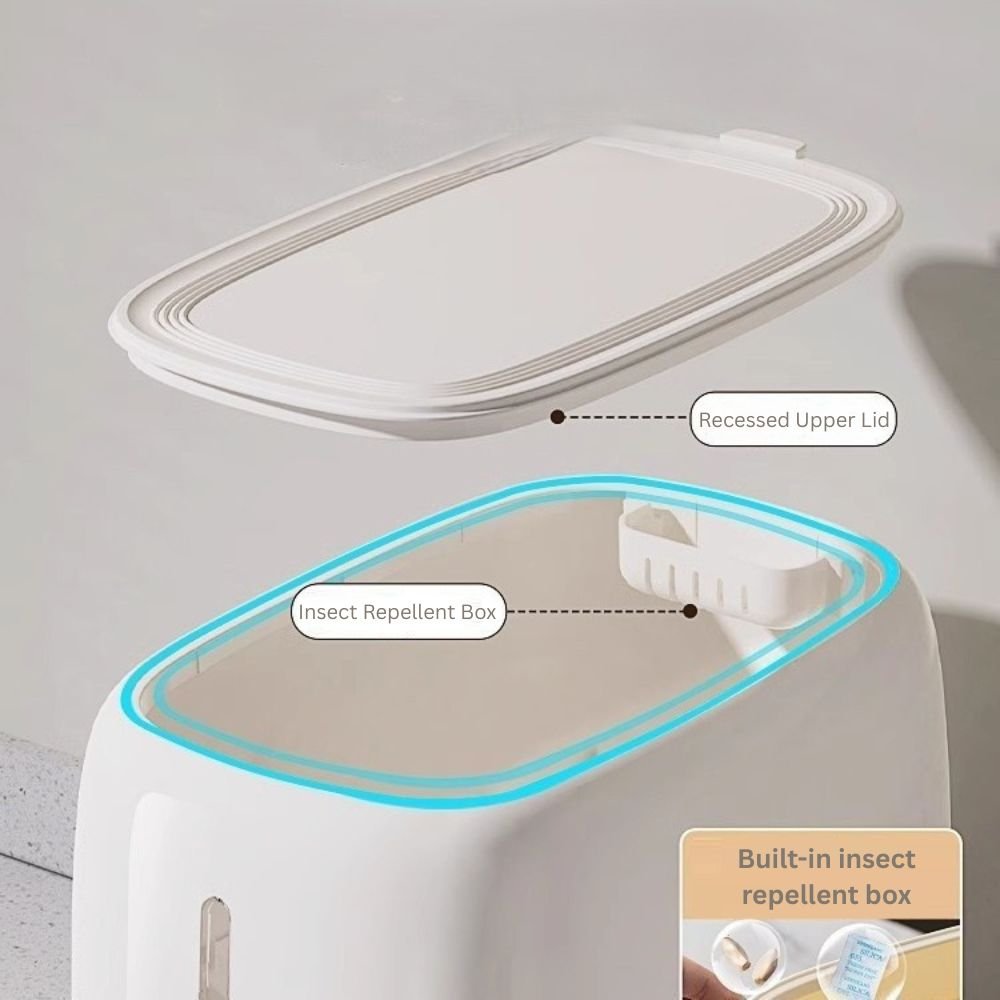 Comes equipped with a built-in insect repellent box integrated beneath the lid. This feature passively protects the grains from common kitchen pests, ensuring every scoop remains hygienic and untouched.