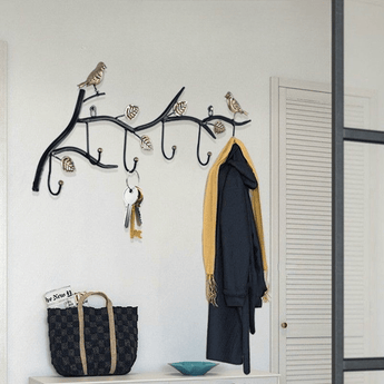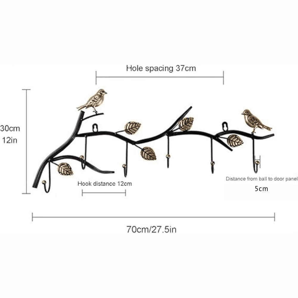 Organize your entryway with our rustic-chic wall-mounted coat rack featuring 6 sturdy hooks and a 30cm wide shelf. Measuring 70cm tall with a 37cm projection, its cast iron construction supports 12kg of daily essentials while the decorative bird accents add charming farmhouse character to your space.