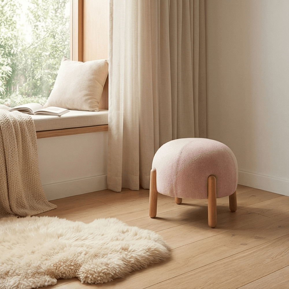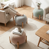 Add a touch of Northern European charm and functionality to your space with this stylish round foot stool. Perfect for resting your feet, extra seating, or as a makeup chair, this compact ottoman features a natural wood frame and a high-quality fabric cover. Its minimalist design fits perfectly in living rooms, bedrooms, entryways, or dorms, offering a cozy spot to relax without taking up too much room.