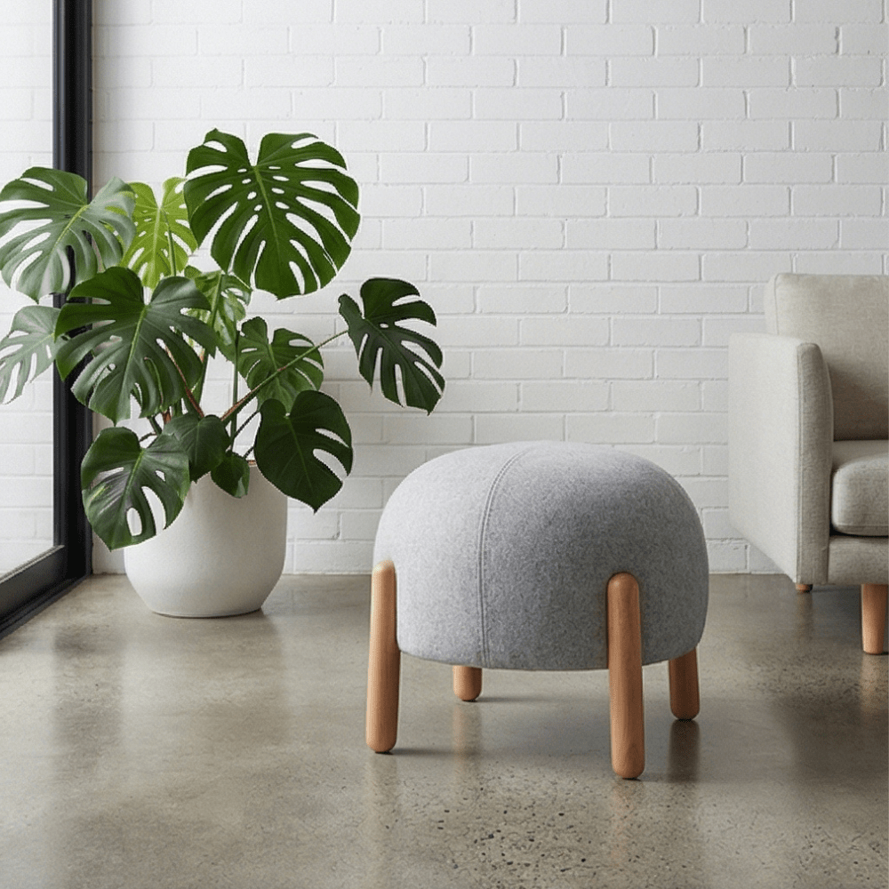 Supported by natural wooden legs, this stool provides a stable and durable base. The design is simple yet robust, making it safe and reliable for use by both adults and children.