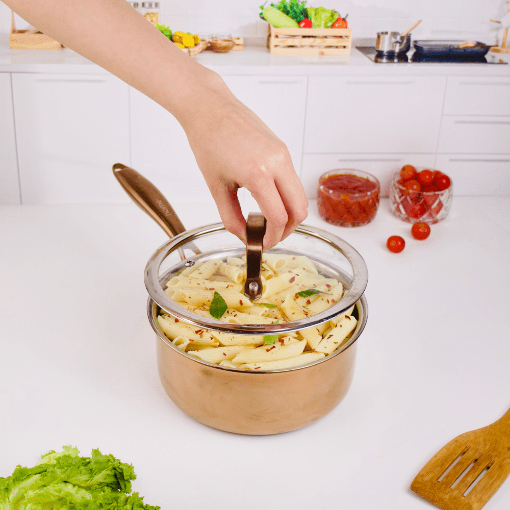 Think silky ganache, tempered chocolate, porridge, dal tadka, instant noodles, custards, gravy, syrups, and small-batch soups. You can do any task where fast, steady heat and precise control shine in this non stick honeycomb frying pan.
