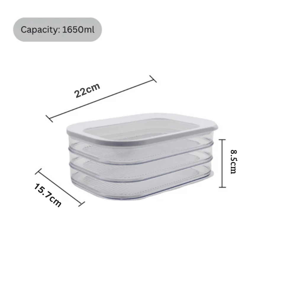 This three-layer sealed storage box is perfect for organizing and preserving food in your refrigerator. Designed with a transparent body and secure lid, it keeps bacon, sliced meat, and other items fresh, odor-free, and easy to access while saving space through stackable design.