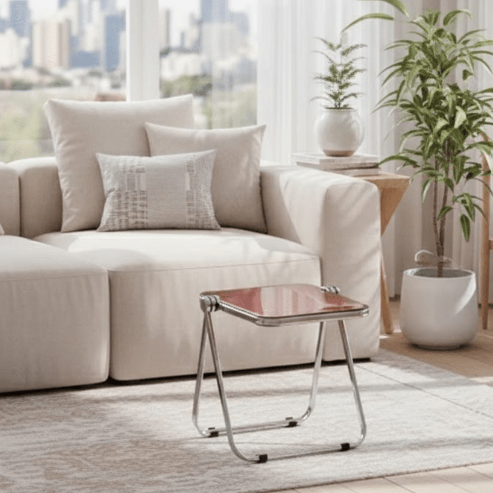 This space-saving folding desk features a crystal-clear acrylic tabletop and durable metal frame. Its elegant, compact design fits perfectly in bedrooms, dorms, or small home offices. Ideal for studying, working, or makeup, it folds easily for storage without compromising stability or style.