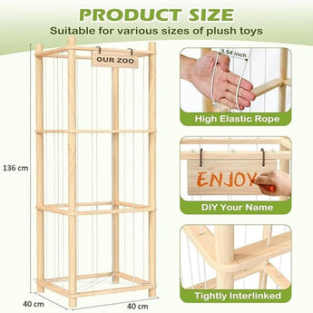Natural Wood Stuffed Animal Tower Cage Toy Organizer(136 cm)