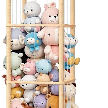 Maximize space in your child's room by organizing stuffed animals vertically. This tower-style design accommodates 40+ plush toys, keeping the floor clear and the play area neat and organized.