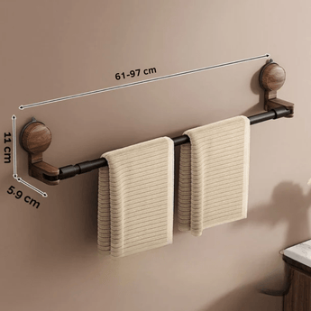 Bring elegance and function into your bathroom with this vintage walnut suction cup towel rack. Designed with a classic retro style, this telescopic towel bar offers adjustable length, durable walnut construction, and seamless suction installation—no drilling required. Its strong load-bearing capacity and corrosion-resistant finish make it perfect for bathrooms, kitchens, and wash areas. With a retractable and 180° rotating design, it saves space while blending into your home decor. Stylish, sturdy, and convenient—an ideal addition to modern living.