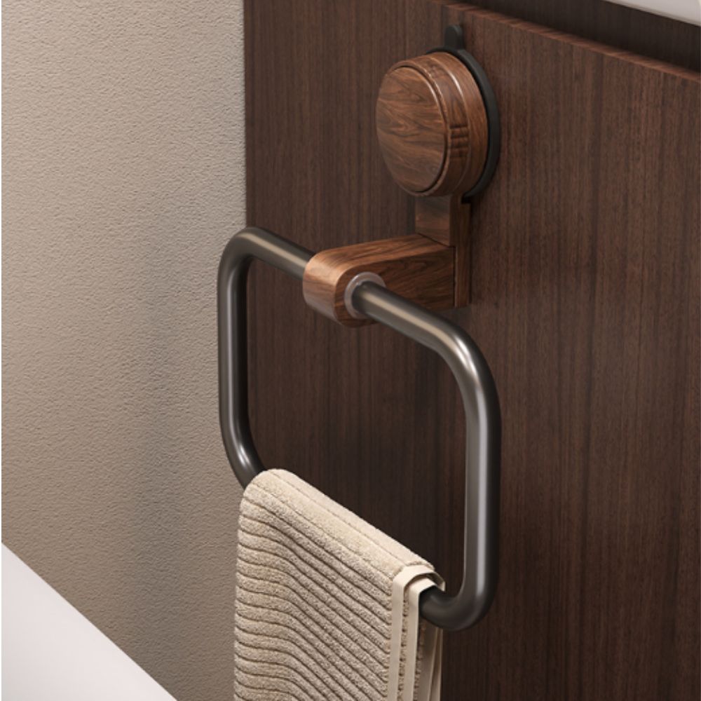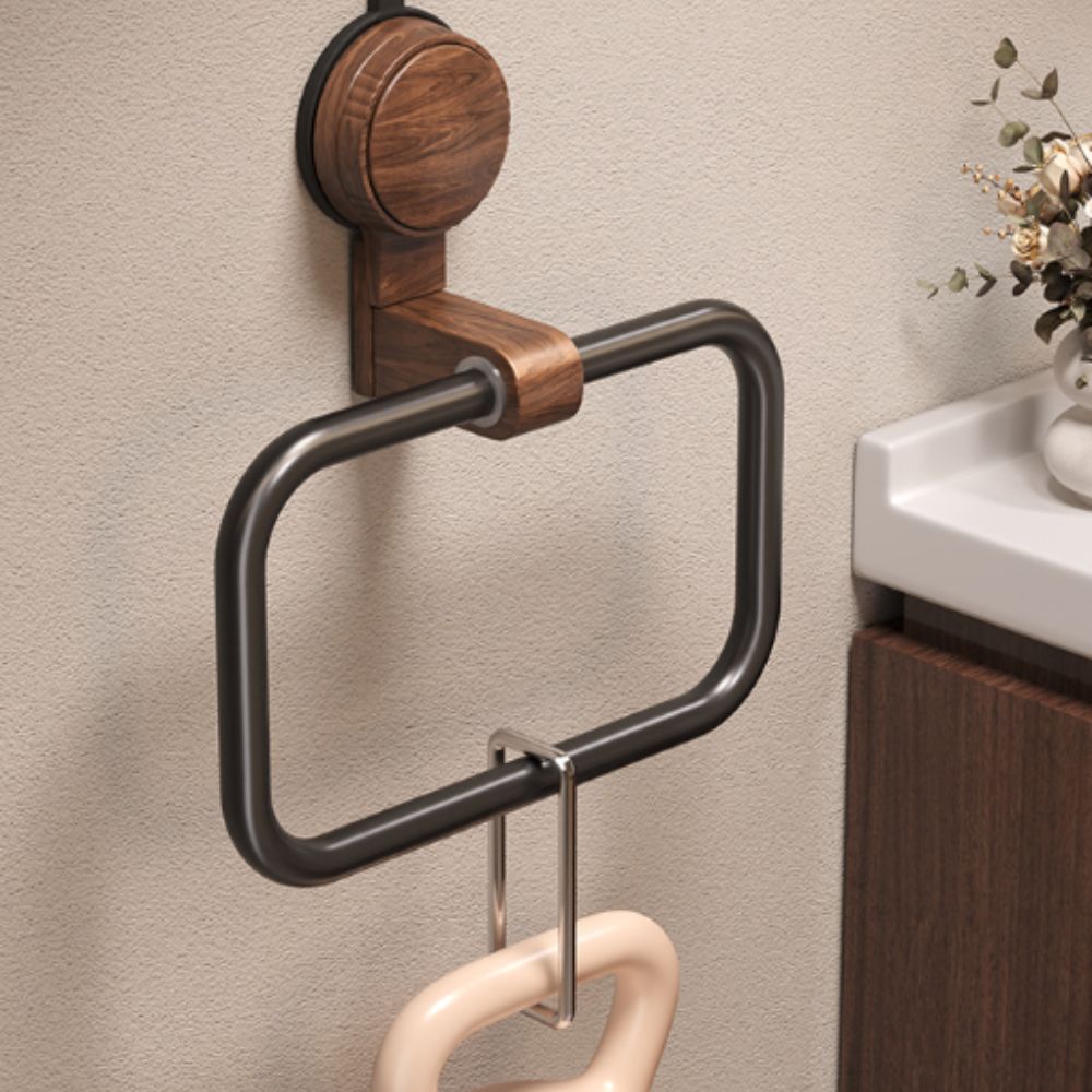 Bring timeless elegance to your bathroom with this vintage-style walnut towel ring. Crafted from premium North American black walnut and space aluminum, it combines natural charm with modern functionality. The powerful suction cup ensures no drilling, no damage installation, making it perfect for renters or anyone who loves convenience. Its antique look complements retro, classic, and modern interiors, while the 180° flip design adds flexibility. Waterproof, rust-free, and durable, this towel rack promises long-lasting performance and refined style.