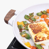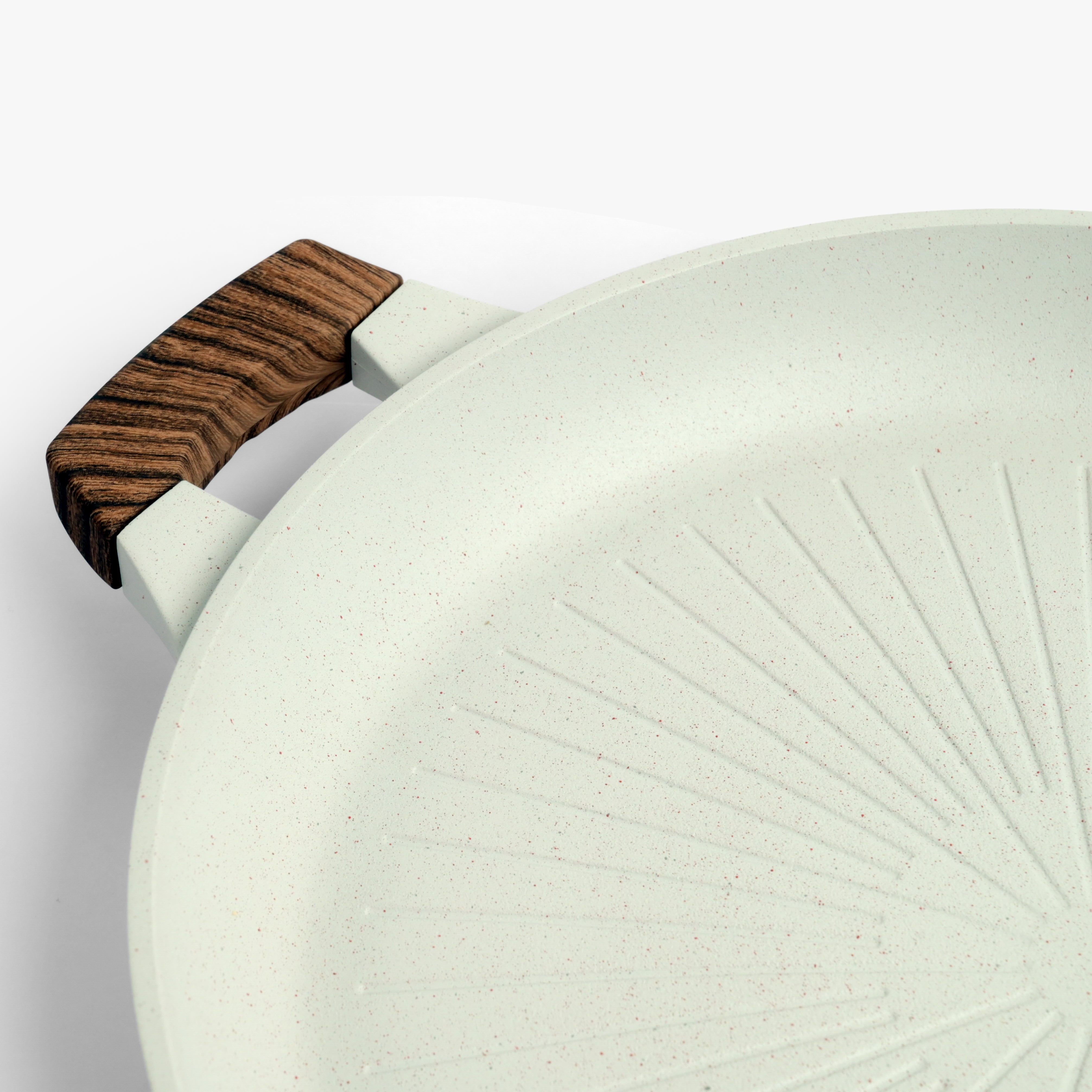 Crafted with volcanic stone material, this grill pan distributes heat evenly, locks in nutrients, and reduces the need for excessive oil, promoting healthier cooking.