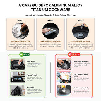Advanced Titanium Coating: Features a titanium-rich non-stick surface for long-lasting performance, scratch resistance, and easy food release with minimal oil.