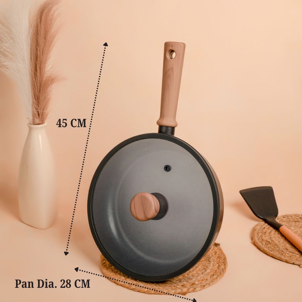Lightweight & Ergonomic Design: The pan’s lightweight build provides easy handling, making it comfortable for one-handed use without strain.