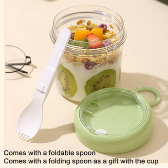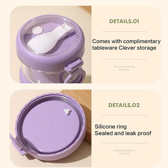 Enjoy meals anytime, anywhere with this Portable Breakfast Cup with Lid and Spoon. Designed for students, office workers, and travelers, this double-layered cup keeps food fresh and secure with its leak-proof seal. Its compact, lightweight design makes it perfect for cereals, yogurt, fruits, and snacks on the go. Durable materials ensure long-lasting use, while the convenient spoon and lid add to its practicality. A must-have for busy lifestyles—your healthy, mess-free solution for eating on the move.