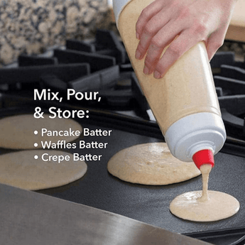 Make perfect pancakes and waffles every time with the Pancake Batter Mixer and Dispenser Bottle. This all-in-one kitchen tool allows you to mix, store, and dispense batter with precision and ease, reducing mess and ensuring consistent portion sizes. Its convenient one-handed dispenser makes pouring straight onto the griddle quick and controlled, while the wide-mouth design simplifies mixing directly in the bottle. Ideal for home cooks, brunch enthusiasts, and small baking businesses, this bottle saves time and keeps your kitchen tidy.