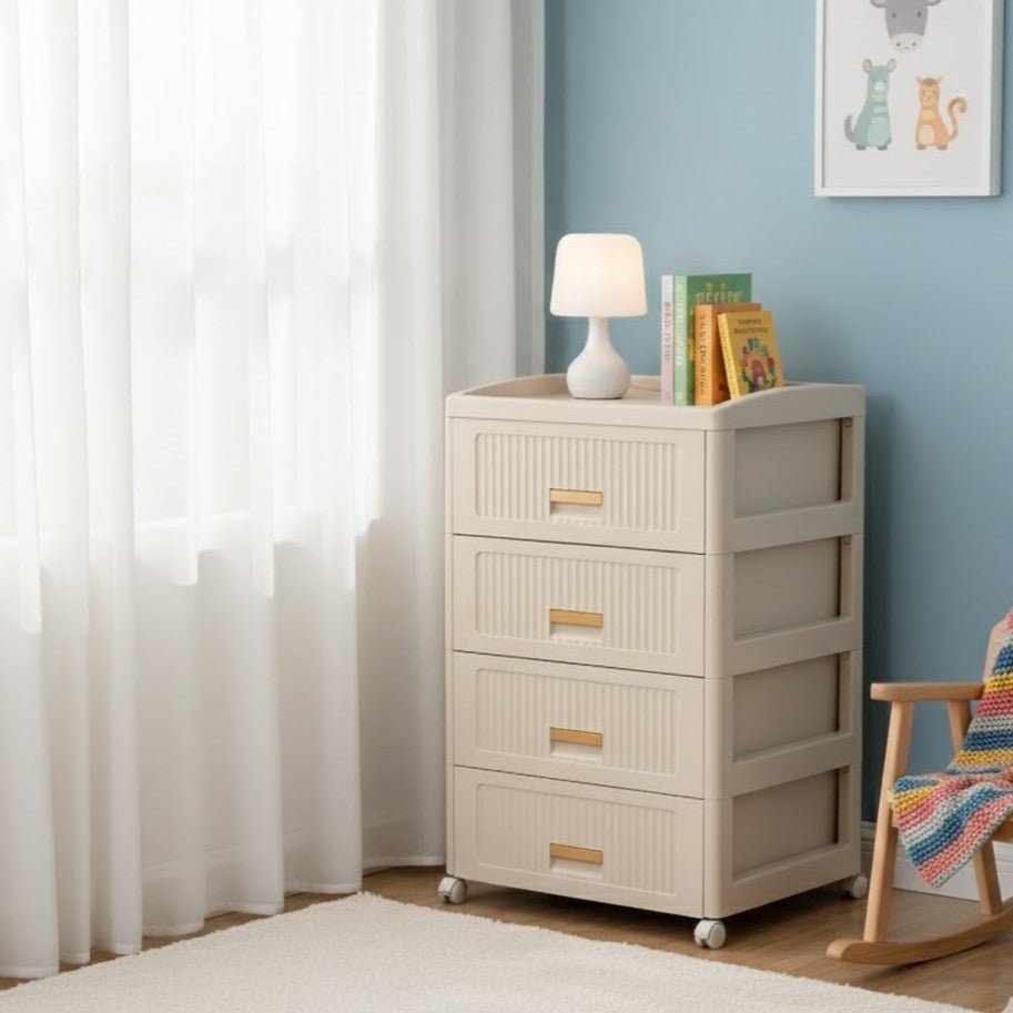 Plastic 4-Layer Drawer Storage Cabinet with Wheels