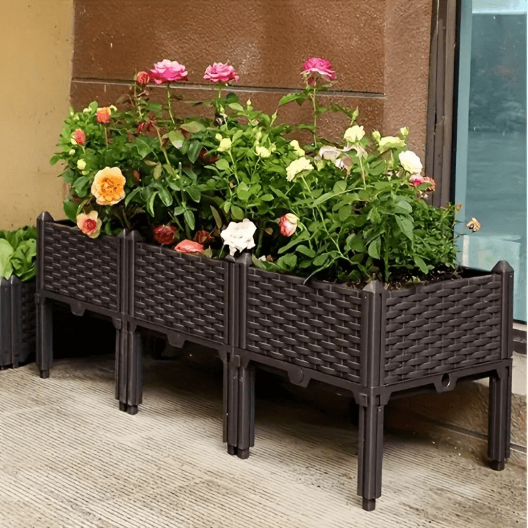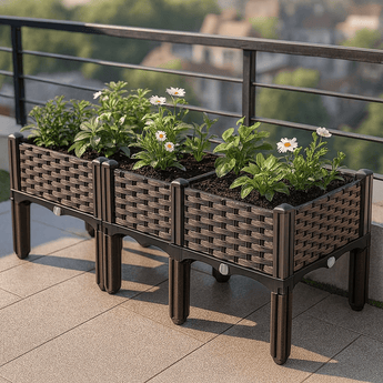 Grow vegetables, herbs, or flowers with this durable, elevated planting box designed for balconies and patios. The thickened plastic structure offers a stylish rattan look, easy assembly, and excellent load-bearing strength, making it perfect for both decorative and functional gardening use in small or large spaces.