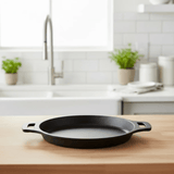 Pre-Seasoned Surface: The cast iron pan comes pre-seasoned for immediate use, providing a smooth, non-stick surface that improves with each use.