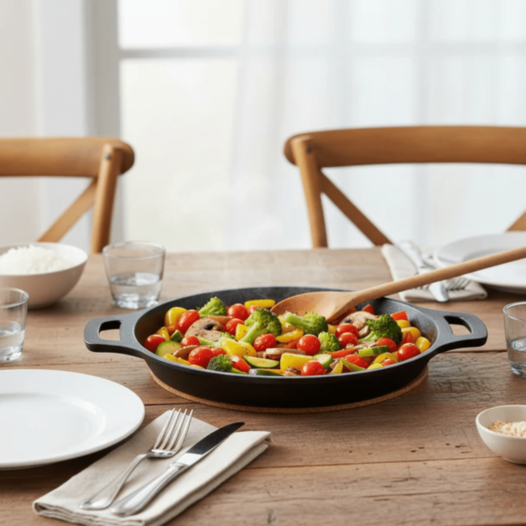 Even Heat Distribution: The cast iron skillet ensures even heat distribution, preventing hot spots and ensuring consistently cooked meals.