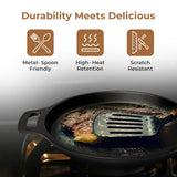 Versatile Cooking: Perfect for frying, sautéing, baking, and searing, this skillet is ideal for a variety of cooking styles, from simple family meals to gourmet dishes.