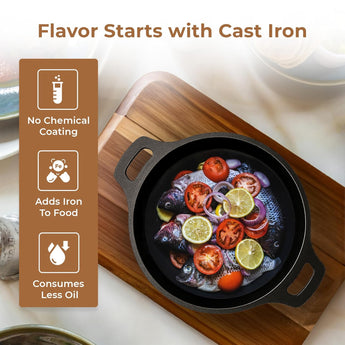 Durable & Long-Lasting: Built to last, this cast iron cookware resists wear and tear, offering reliable performance for years to come.