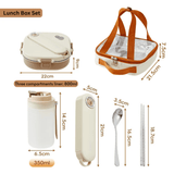 Carry everything in one go—this set includes a four-compartment bento box, a matching tumbler, a durable spoon and fork set, and a thermal lunch bag for complete mealtime convenience.